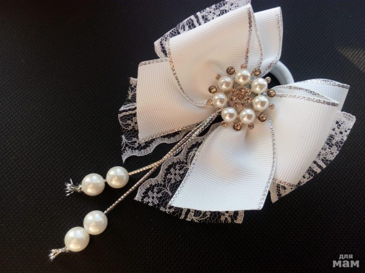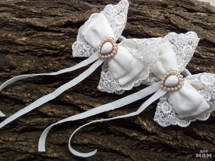 1) Нарядные бантики с лентой с люрексом и нежным кружевом. Красиво будут смотреться на косичке!