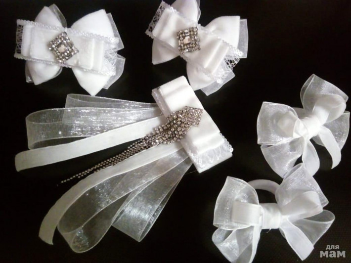 Эксклюзивный набор, выполненный из белого бархата, декоративной ленты и воздушной органзы