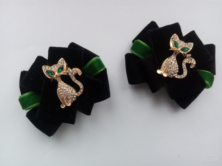 Бархатные бантики-малютки (6 см) приютили на себе гламурную диву. Прикогтилась кошка знатно! Будите отрывать прогонять, не получится.