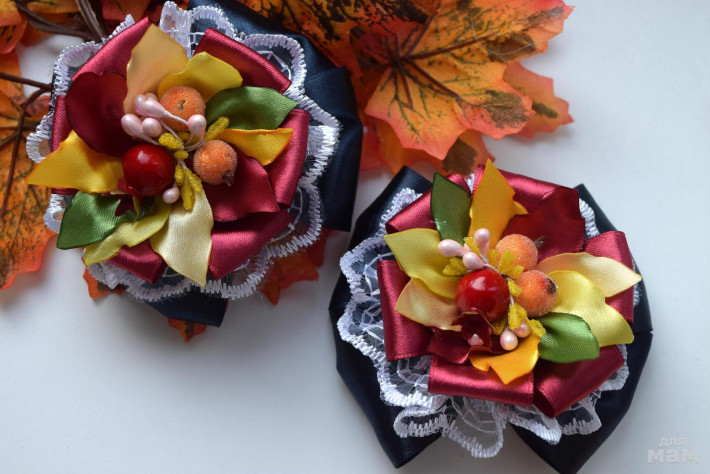 Школьные резиночки "Праздник осени". Очень объемные, но не громадные - около 8 см. Цена 370р. Нижний бант накрахмален и будет держать форм...