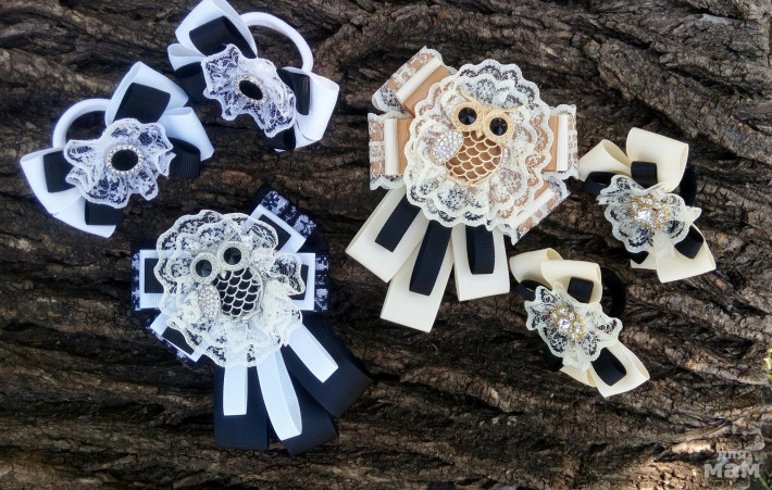 Серо-белые большие бантики для хвостиков. Размер бантика около 10 см.