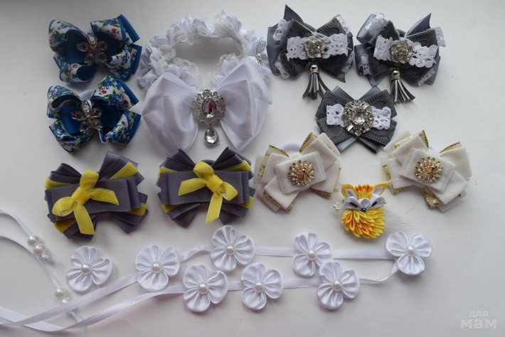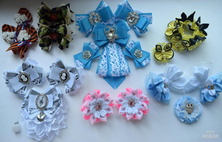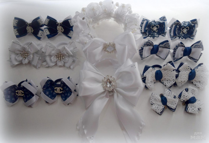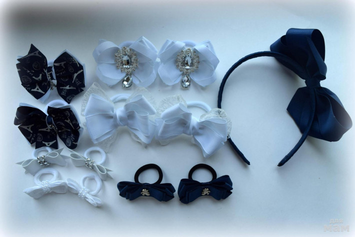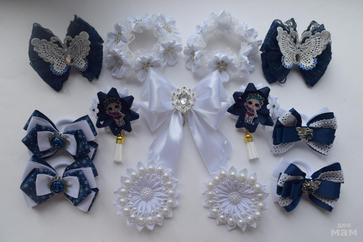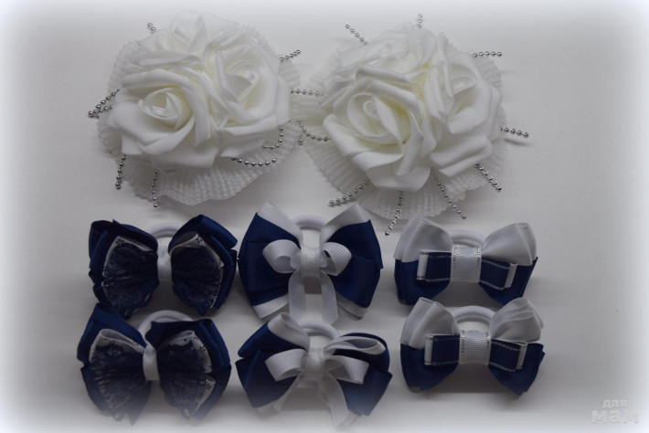 А тут под голубые блузочки в школу еще один набор - резиночки и маленькая брошь