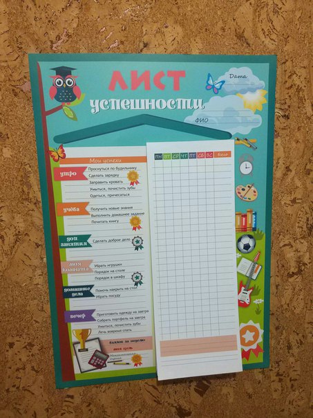 Представляем Вам нашу самую "технологичную" новинку, которая научит Вашего ребенка организации своей деятельности как дома, так и в школе, а Вам позволит вести правильный контроль - ЛИСТ УСПЕШНОСТИ!