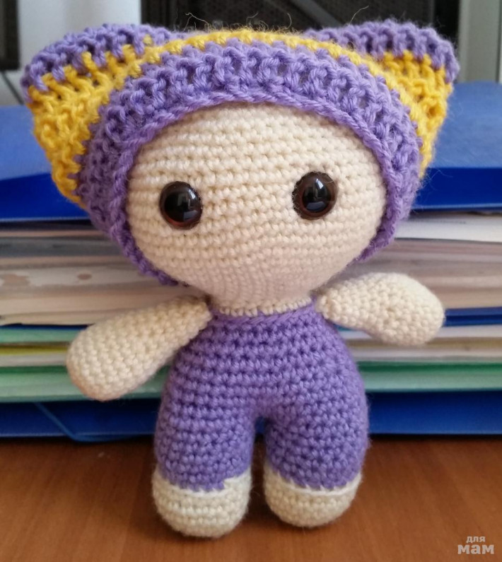 Рост 13,5 см. Связан крючком. Набит синтепоном. Глазки: винты с крепежом.