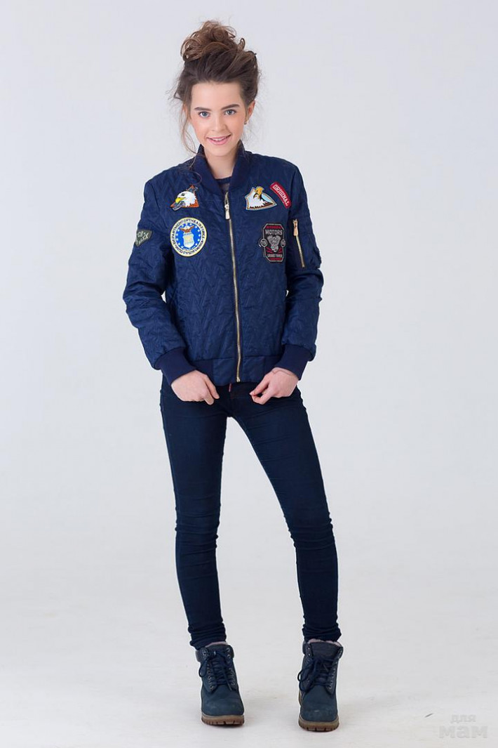 Куртка стеганная с трикотажной резинкой по низу. Воротник стойка из трикотажа. Центральная застежка на открытую молнию. Рукав с трикот...