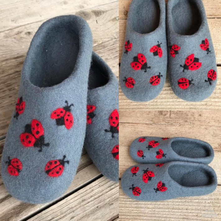 Встречаем))) мягкие комфортные шерстяные на кожаной подошве))) Любимые божьи коровки для дома, дачи)))) под заказ!!! Форма может быть с задником или полусапожками ...