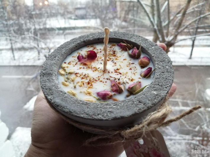Ручная работа. В бетонном подсвечнике. Размер 11 * 4,5