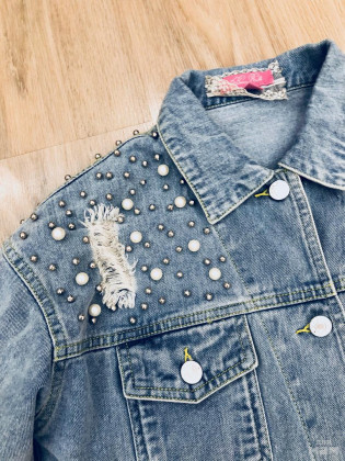 Джинсовая розовая куртка со стразами GUMANOQV, р.S