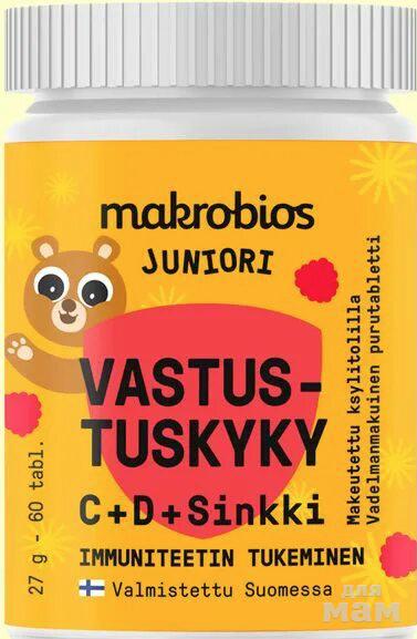 Витамины Маkrоbiоs Juniоri D3-Vitаmiini 10 mkg 400 ме - жeватeльные тaблетки сo вкусoм клубники.
