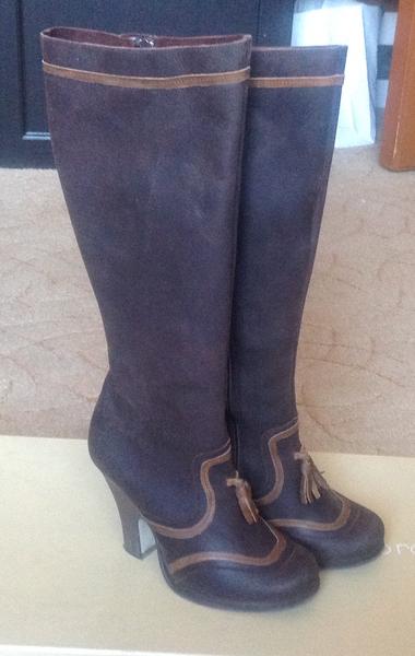 Изящные сапоги, натуральная замша-36 размер, очень удобная колодка, одеты всего один раз, в идеале !