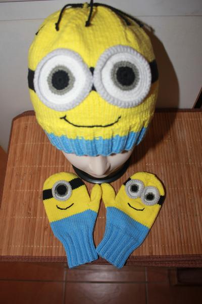 Комплект с Миньонами (шапка+варежки).На ОГ 52-54см и ладошку 13-14см.