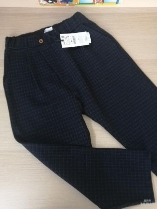 Новые брюки для мальчика, Zara р. 134/9лет. Темно - синие в клетку.