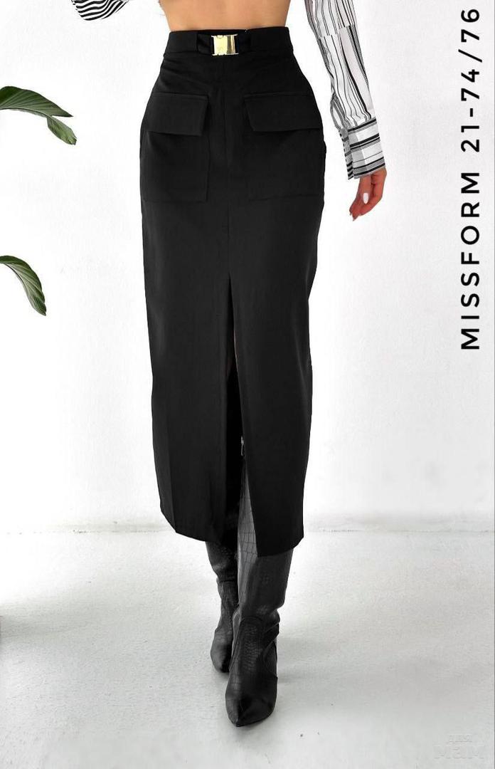 Модель юбок миди длины😍 Актуальные нашивные карманы и разрез впереди🔥 Костюмная ткань с лайкрой, благодаря чему сидеть будет на вас великолепно🌟