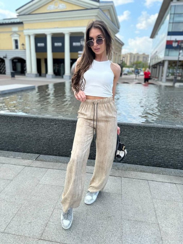 Спортивные штаны палаццо😍 Широкая резинка на поясе с эмблемой💫 Удобный прямой крой для вашего комфорта🌿