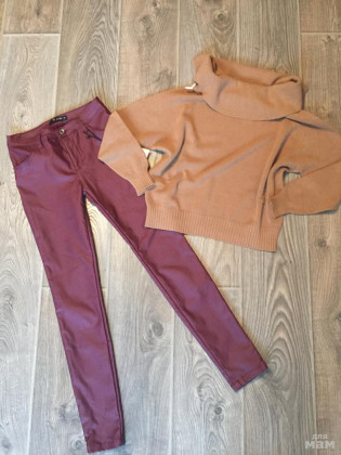 Брюки под кожу размер хс и джемпер уник( Италия )