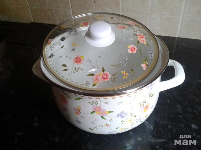 и кастрюля. Тоже очень красивая. Обожаю эмалированную посуду.