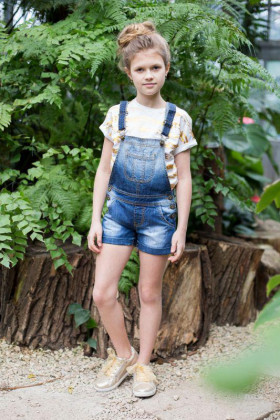 Полукомбинезон джинсовый Luminoso для девочек Синий 100% хлопок, размер 128