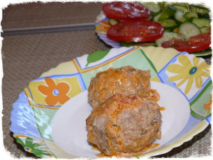 Рис я не остужала, прямо так замесила к фаршу. Скатала ...