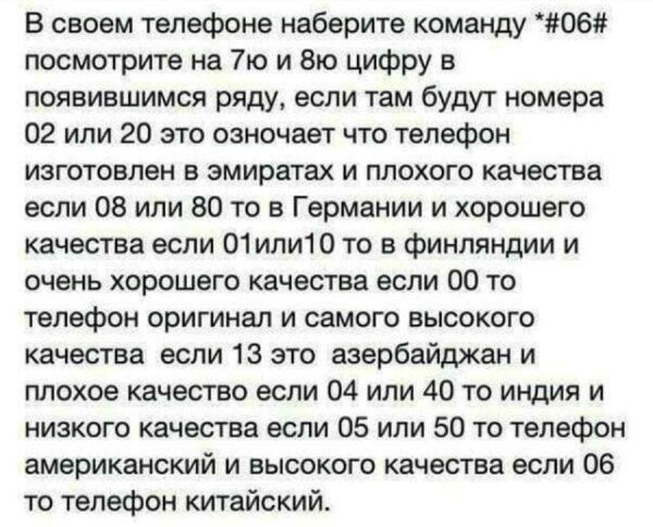 1. Чтобы узнать свой IMEI необходимо набрать *#06# или читайте, как узнать IMEI?