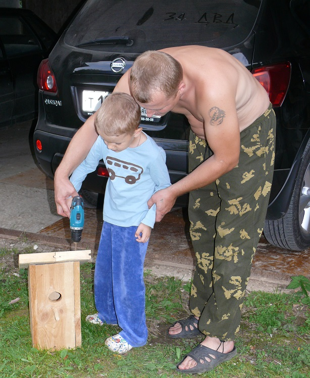 для начала решили не заморачиваться и сделали простенький лук и стрелу - но так как у него стало отлично получаться стрелять, да еще и очень понравилось, то пришлось сделать большой и хороший лук - папа полдня старался, пилил, скоблил и заматывал - а результат чуть ниже)