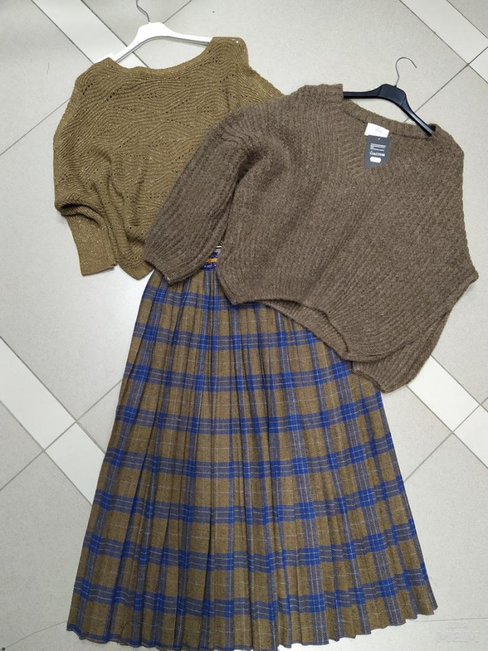 Сет на 44-46, но кофточка идёт в принципе на 44-50...садится отлично и на 48-50 !