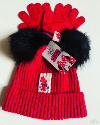 Шапка+перчатки-Минни.красные и розовые. 52 см и 54 см.