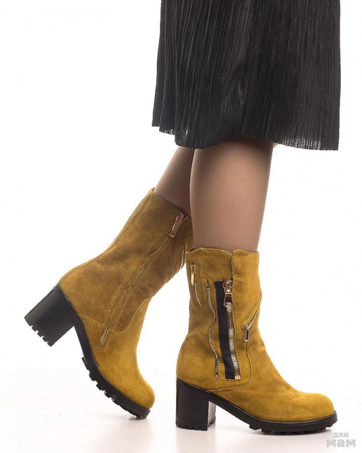 Ботинки демисезонние артикул: SPRING 8392-1D 2200+15% Натуральная замша. Подкладка: байка. Каблук 3 см, платформа 1,5 см, высота 11 см, обхват голенища 25 см. В размер.