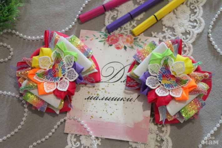 небольшие бантики на маленьких резиночках. стоимость 350р. Повтор под заказ.