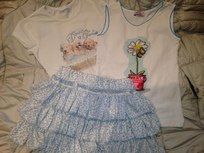 Blumarine юбка новая р 6 2000р, майка monnalisa р 6 в идеале 800р, майка Ferre мар 6 1000р в идеалеБрюки легкие белые Ferre в идеале 2000, р 6 лет. Остальное могу фото выслать по ватсапу, одежды много на 4-8 лет
