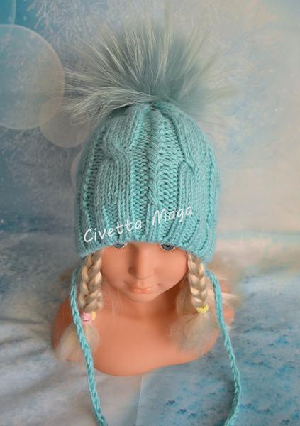 цвет мята, помпон белоснежный финский енот, размер 49-52, по желанию можно декорировать