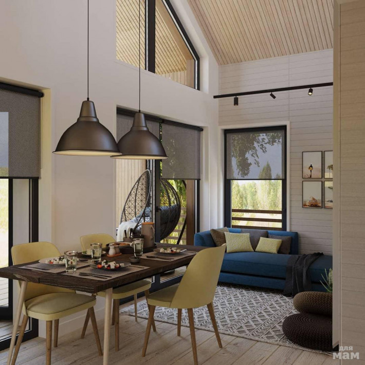 Это проект интерьера домика для строительной компании на Алтае. Реализацию делают самостоятельно.