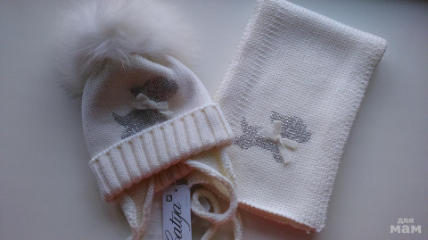 Богатый зимний белый комплект Catya шапка + шарф р-р 3 (ОГ 50-52 см)