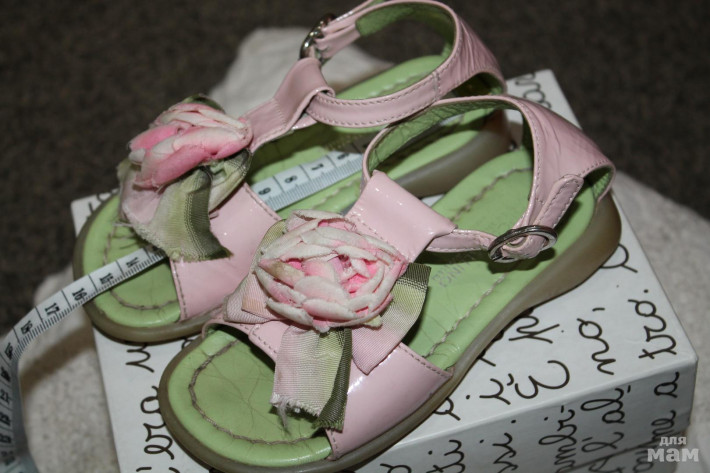 Очень нежные босоножки. Состояние на фото, на мой взгляд, хорошее. Из явных нюансов - несколько трещинок на ремешке. Приоритет берущему вместе с идеально подходящим платьем Лаура Эшли , размер 3 года. Состояние отличное. Всё вместе отдам за 2500.