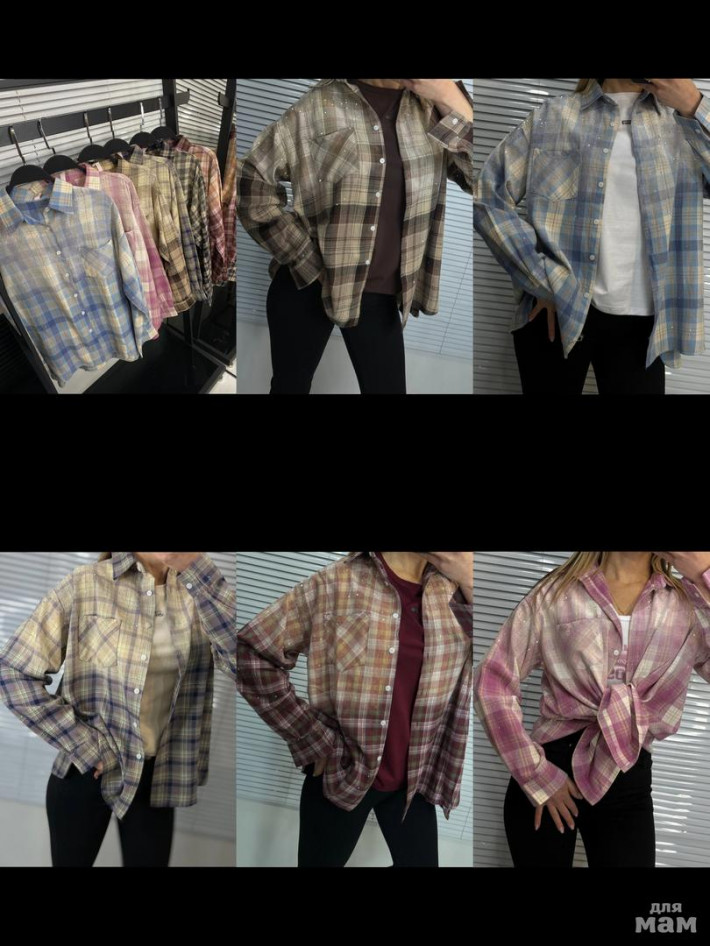 КЛАССНАЯ НОВИНКА! РУБАШКА КЛЕТКА НА ПЛЕЧАХ СТРАЗИКИ В ТОН -1750Р.