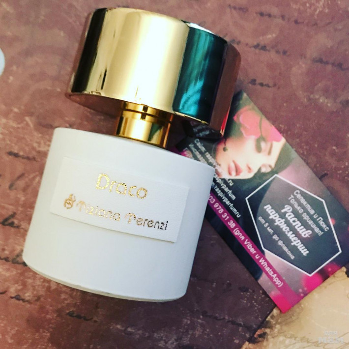 Draco Tiziana Terenzi - это аромат для мужчин и женщин, принадлежит к группе ароматов восточные. Это новый аромат, Draco выпущен в 2015. Парфюмер: Paolo Terenzi. Верхние ноты: Бергамот, Лимон, Апельсин и Зеленые ноты; ноты сердца: Персик, Жасмин, Белый кедр, Пачули и Магнолия; ноты базы: Ваниль, Бобы тонка, Мускус, Груша и Гелиотроп.