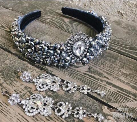 Свадебный вечерний ободок ручной работы и серьги