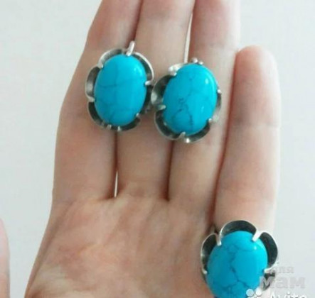 Яркий комплект с бирюзой. Серьги и кольцо серебро