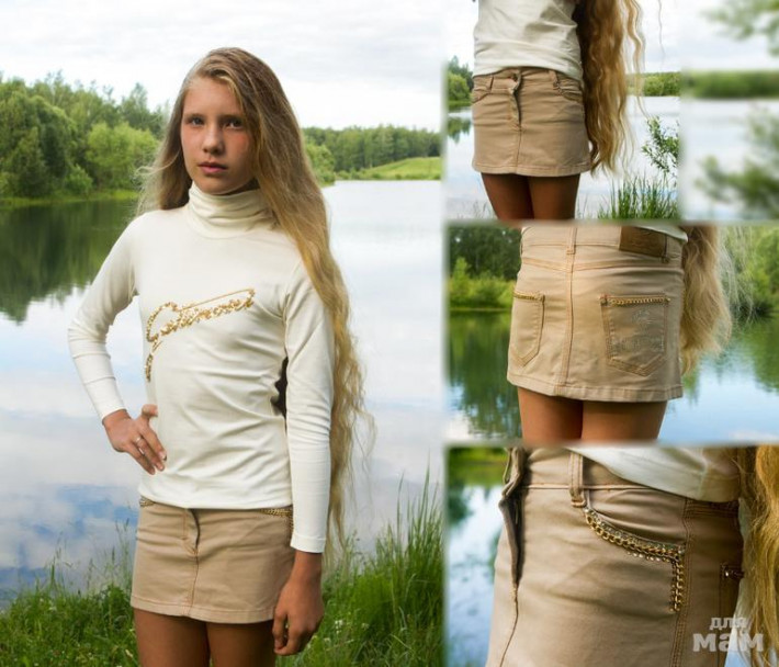 Есть любители надевать своим девочкам мини юбочки? Цвет бежевый. Украшена цепочкой и стразами.