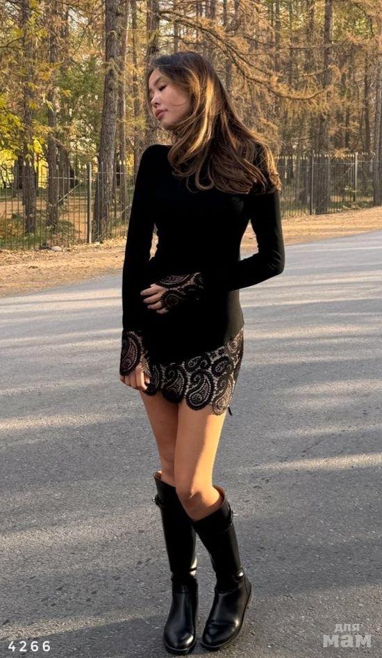 Платье мини , стрейч с вставками из кружева. Длина от плеча 79см / пог 40см, тянется.