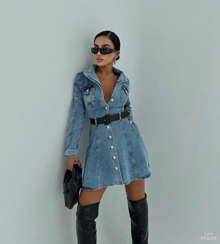 Джинсовое платье в длине мини из плотного 100% коттона