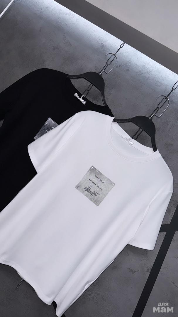 Стильная лаконичная футболка с принтом из камешек. Длина изделия 61 см. Отличное качество. ЦЕНА 800 РУБ