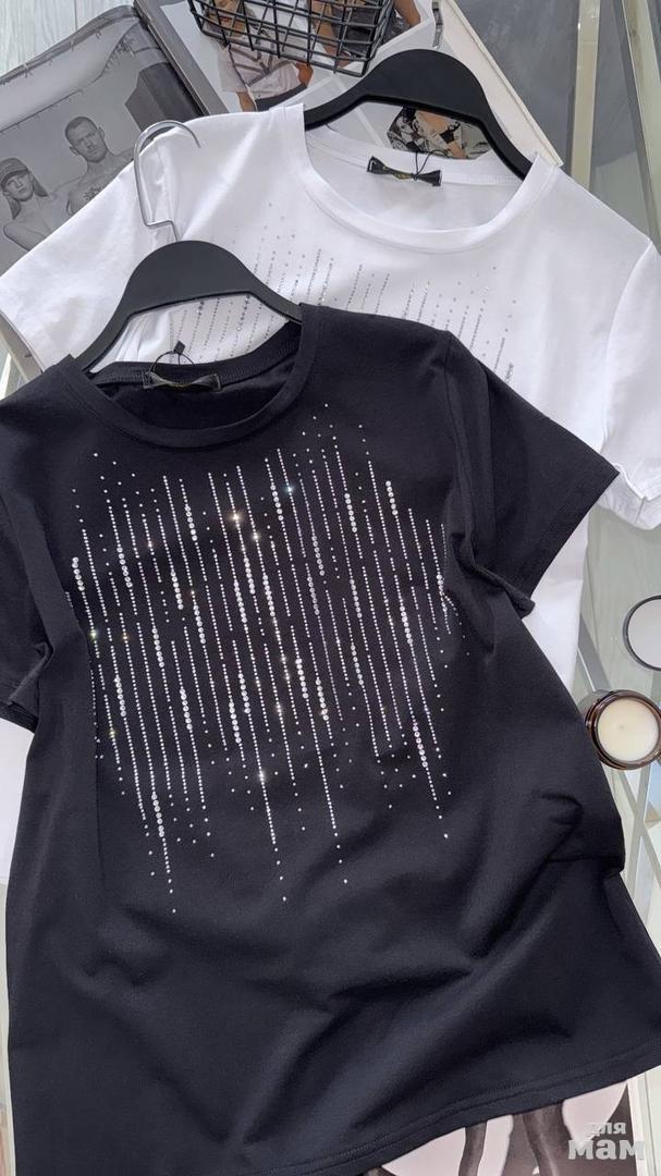 Классные футболки с камешками. Отличное фабричное качество. Материал: хлопок со стрейчем, длина по спинке 62 см. ЦЕНА 700 РУБ