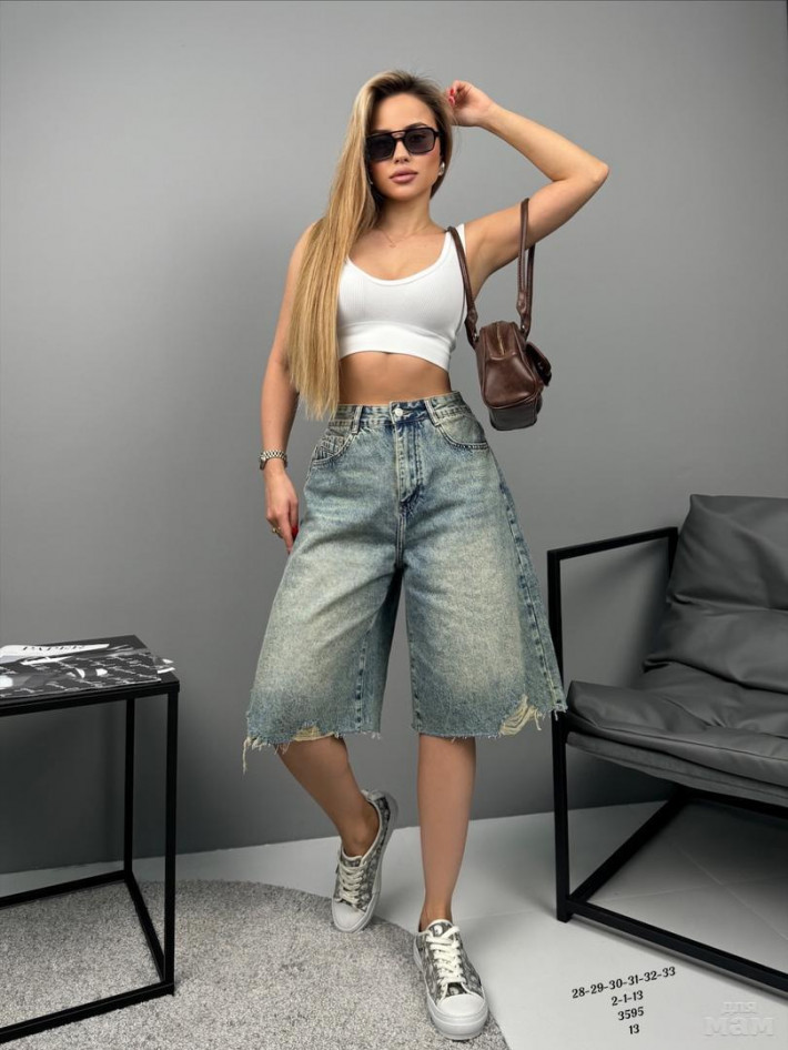 Женские шорты - багги . 2-1-13 3595 13. Качество отличное. Хлопок с добавлением стрейча. Посадка высокая , рост модели 170. ЦЕНА 1300 РУБ