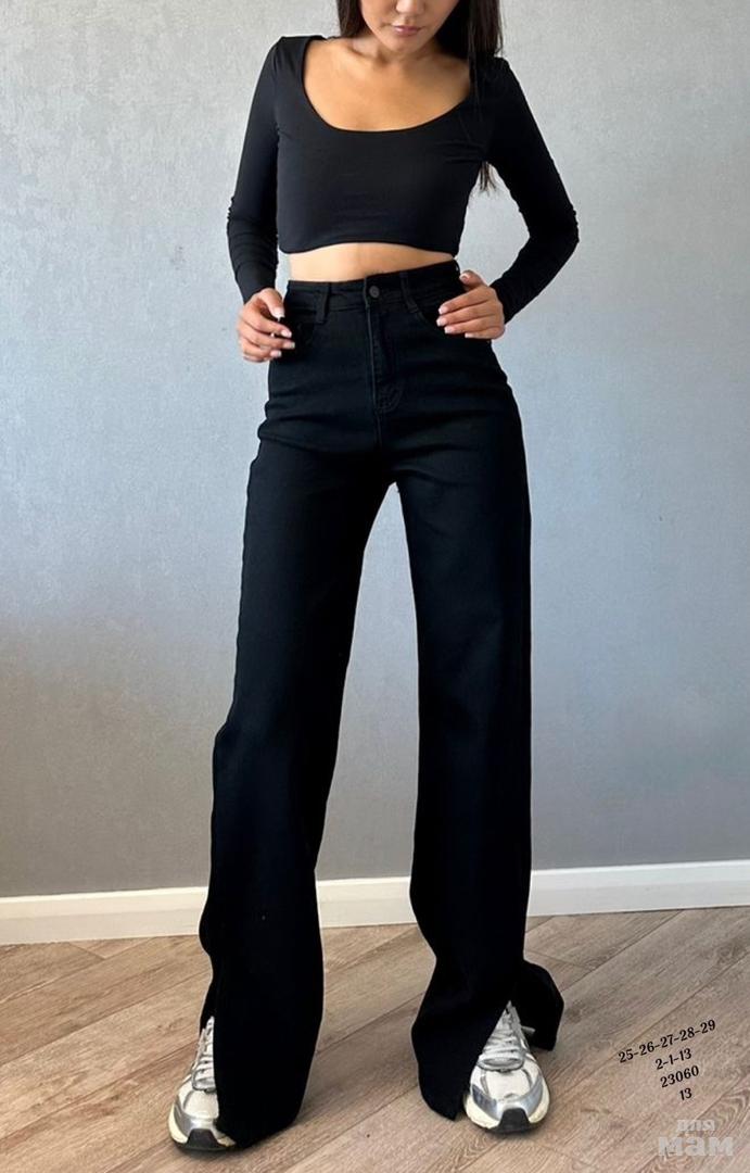 Женские джинсы палаццо . 2-1-13 23060 13. По бокам разрезы . Хлопок с добавлением стрейча. Посадка высокая , рост модели 170 . ЦЕНА 1300 РУБ