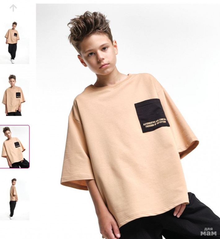 Футболка с карманом оверсайз для мальчика подростка UD 7985 бежевый