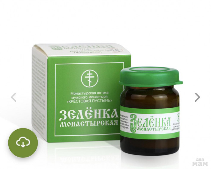 Входящий в состав монастырской «Зелёнки» комплекс растительных масел издревле использовался целителями как антисептическое средство, действует очень мягко, образует на поверхности кожи невидимый защитный слой, препятствующий проникновению болезнетворных бактери...
