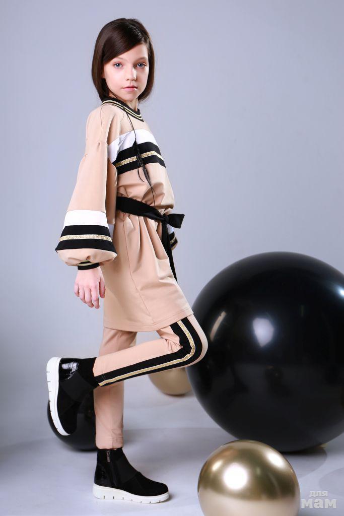 2118-1 комплект: платье+леггинсы, трикотаж двунить 140-164 капучино5% лайкра 5% вискоза 90% хлопок цена 4790