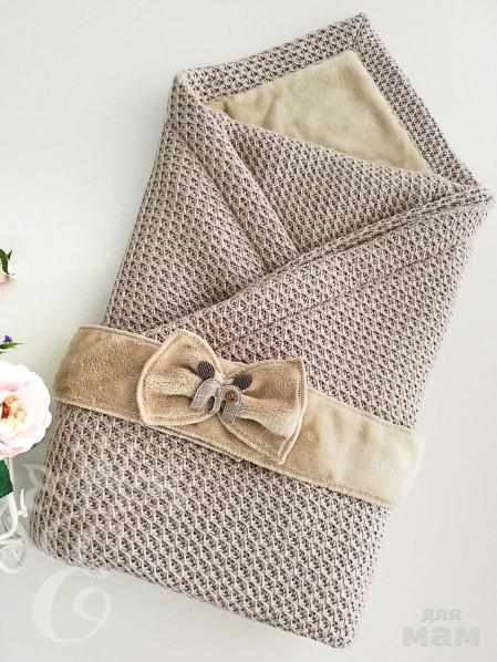 Плед вязанный на велсофте с бантом-завязкой- 1400 руб.