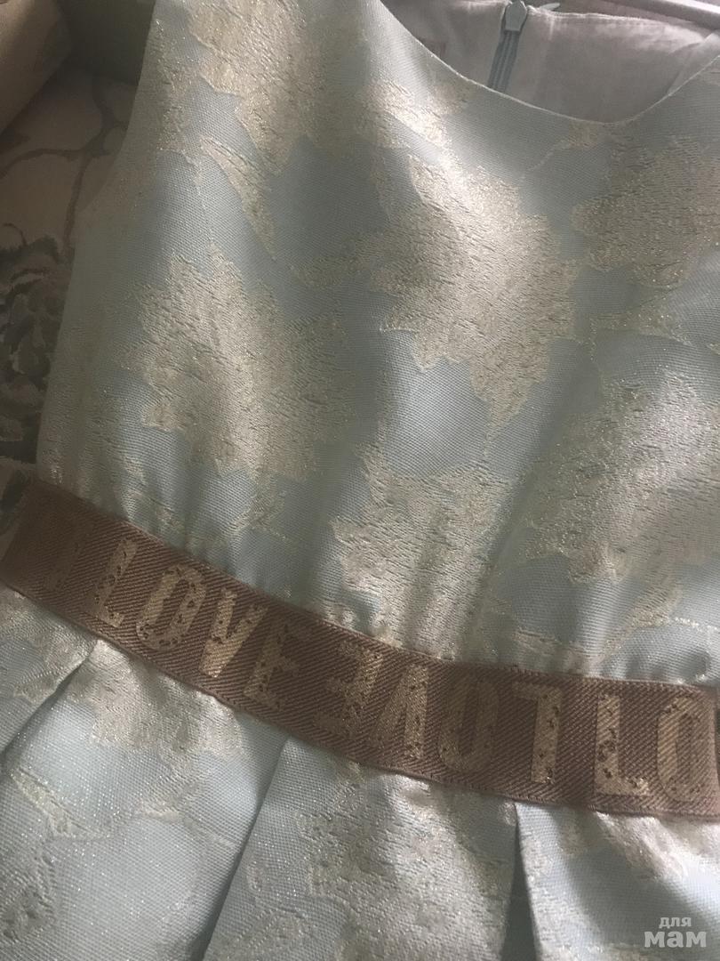 Платье очень красивое , нежно бирюзового цвета, расшито золотой нитью. Одевали 1 раз на выпускной в сад . Теперь мало(