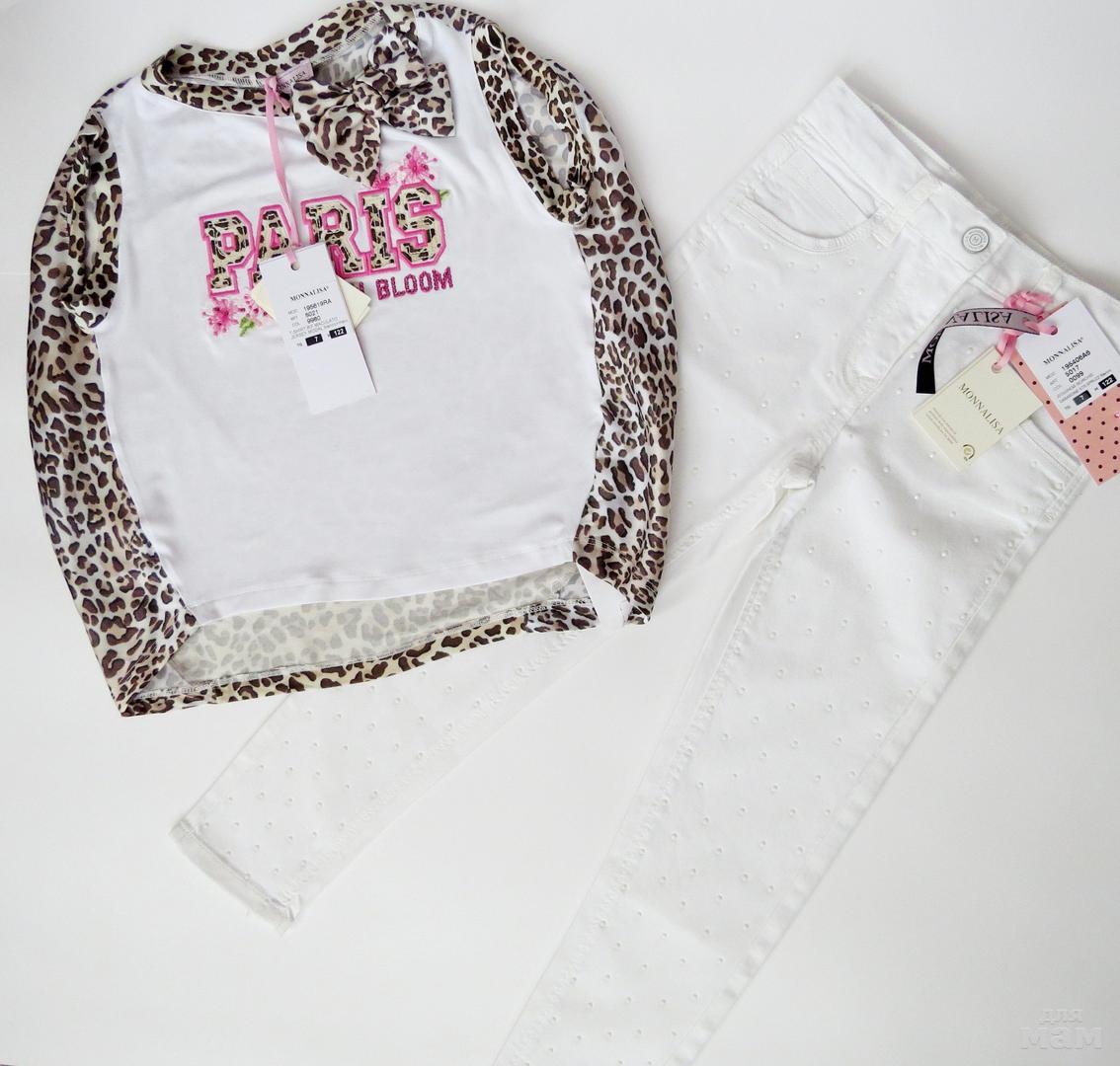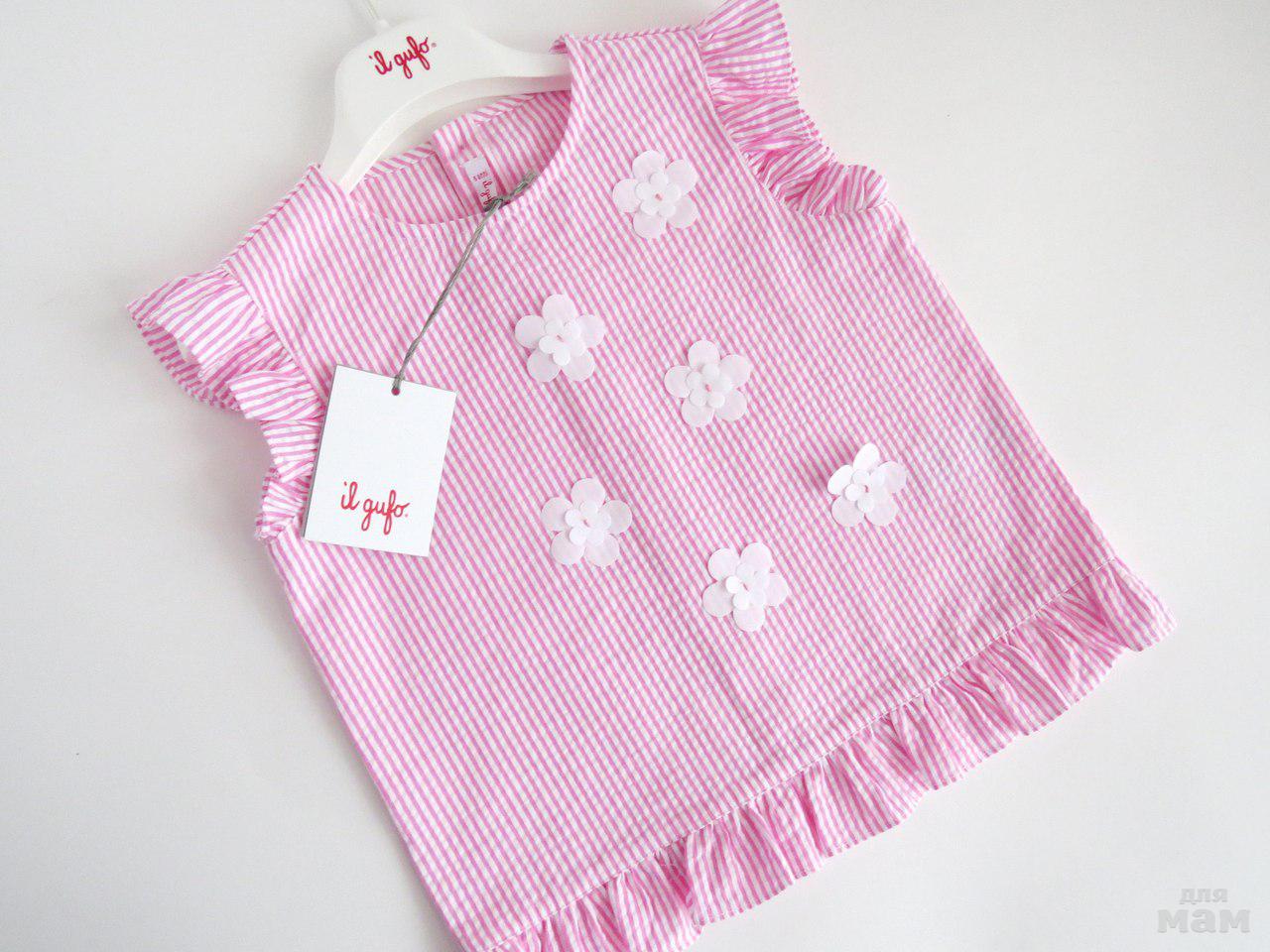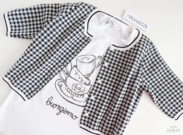 Состоит из нижнего топа - маечки ярко-малинового цвета и верхнего, свободного, белого , с малиновой отделкой